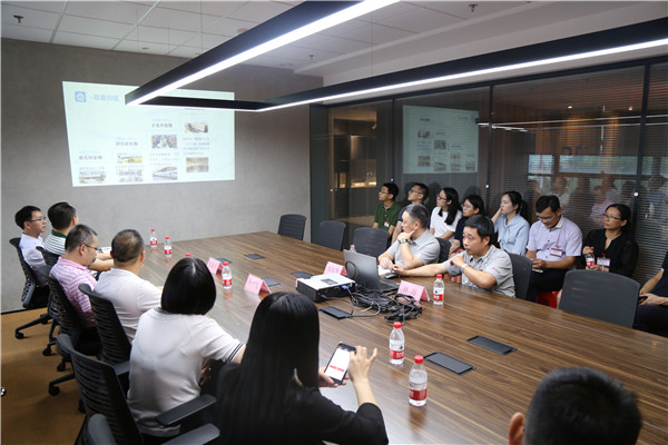 现场的党政办的同事对物流中心的信息化以及物流经营等方面表示浓厚的兴趣,纷纷向张总提问,张总耐心地一一解答。